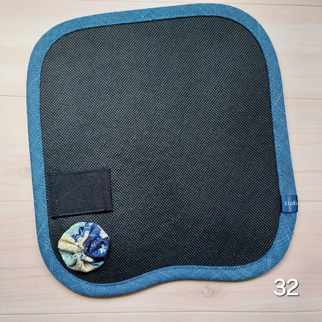 皮の除湿シート(32)●お炭ちゃん●縁取り-青/駒止め飾り-丸花