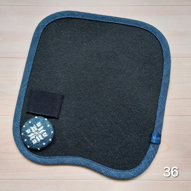 皮の除湿シート(36)●お炭ちゃん●縁取り-紺/駒止め飾り-こぎん刺し包みボタン