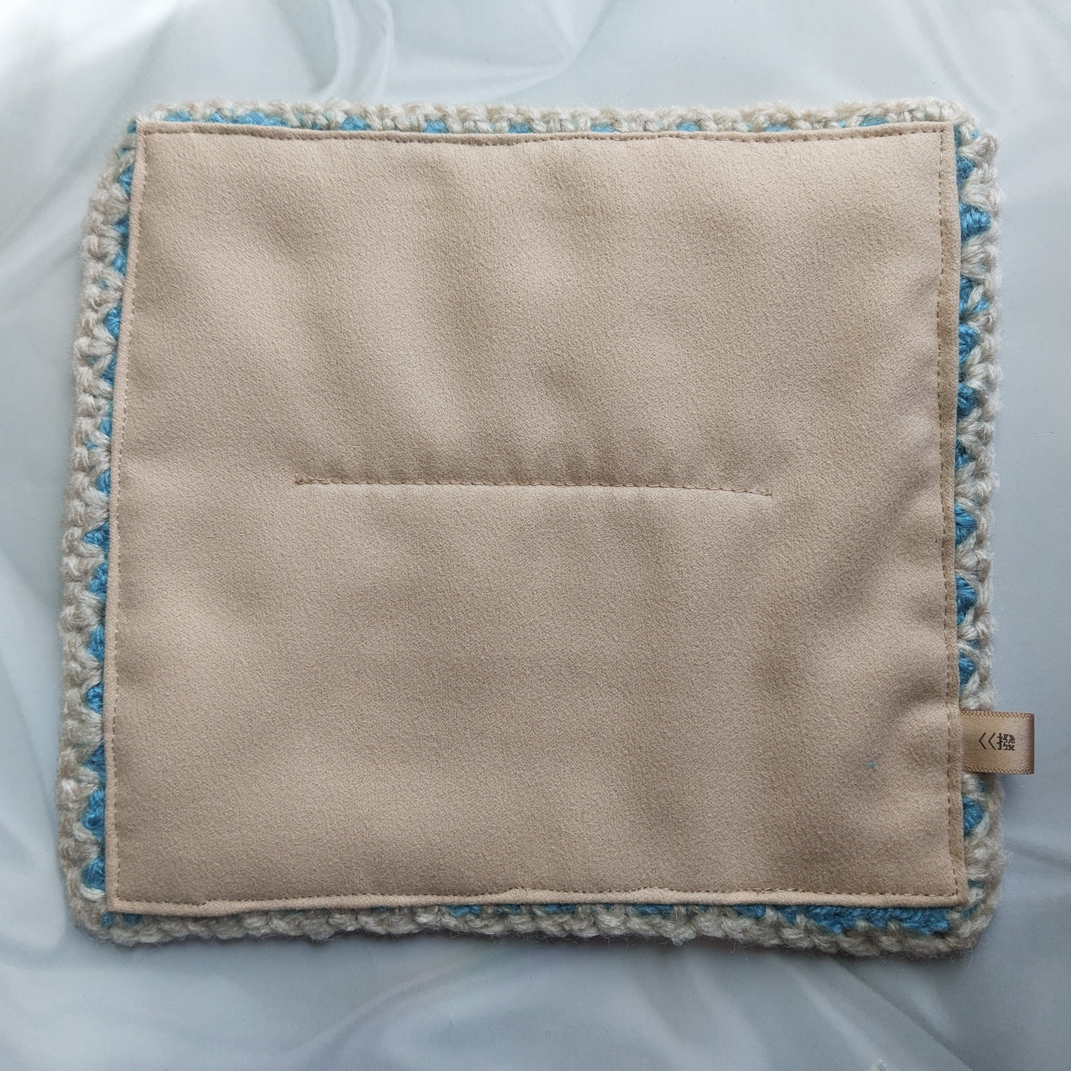 リニューアル☆三味線も撥もピカピカに!お手入れクロスⅢ(アクリル編地×艶ふきん)【ラムネ×ベージュ、縁取りあり】