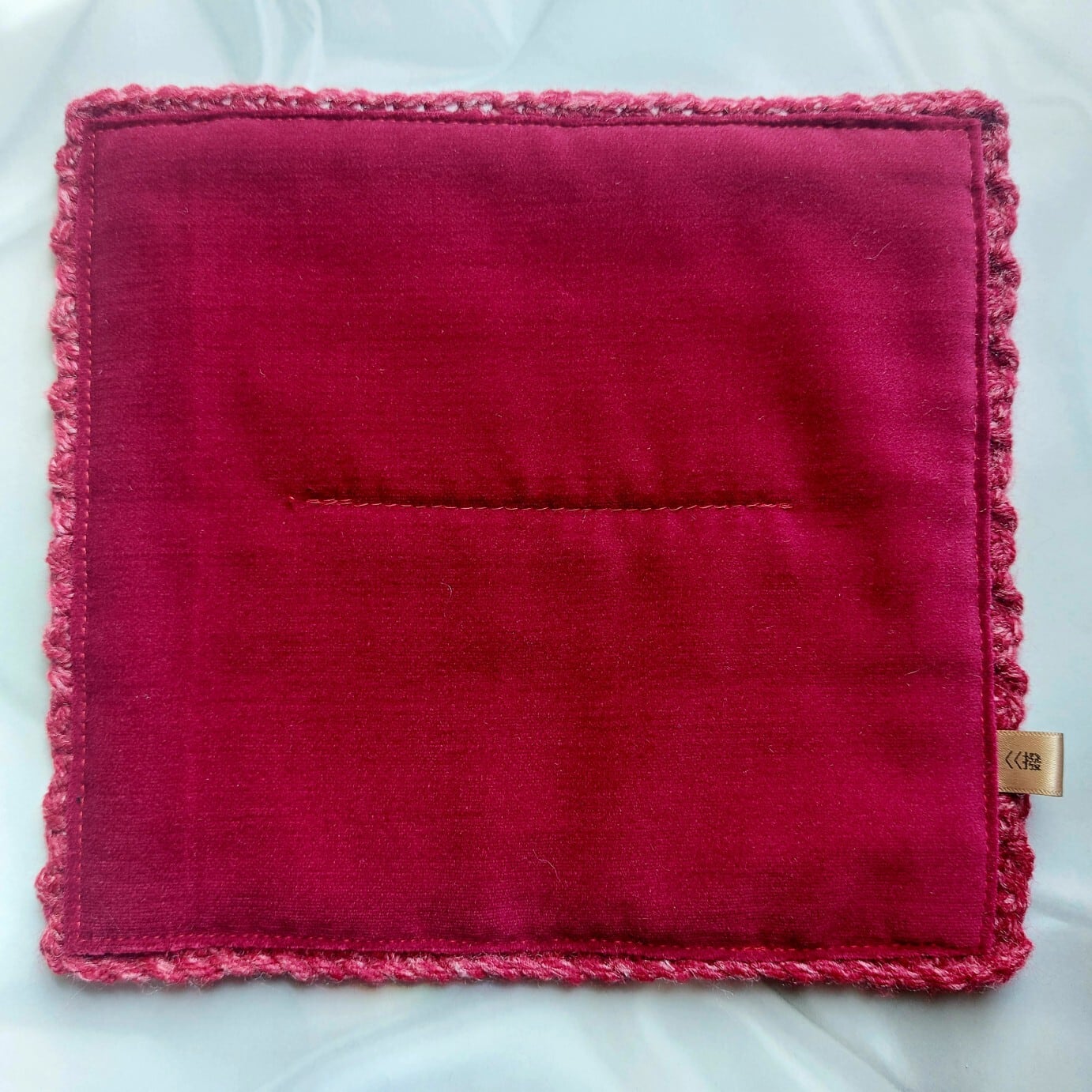撥のべっ甲はやはり従来のつや布巾やセリートのクロスが良いようでしたので<リバーシブル>にして縫い合わせ商品化したのがこちらのクロスです。分かりやすいように【〈〈撥 】〈撥はこちら〉のタグも◎ 大きさは従来のクロス(セリート・艶ふきん等)の四分の一(約19.5㎝×18㎝/手編みですので若干の差異はご了承下さい)。クロスを二つ畳んだ大きさで使い勝手よく、厚みも磨きあげるには程良い厚みかと思います。