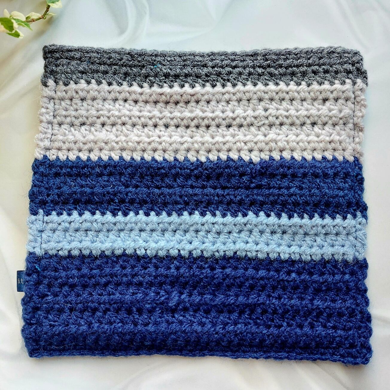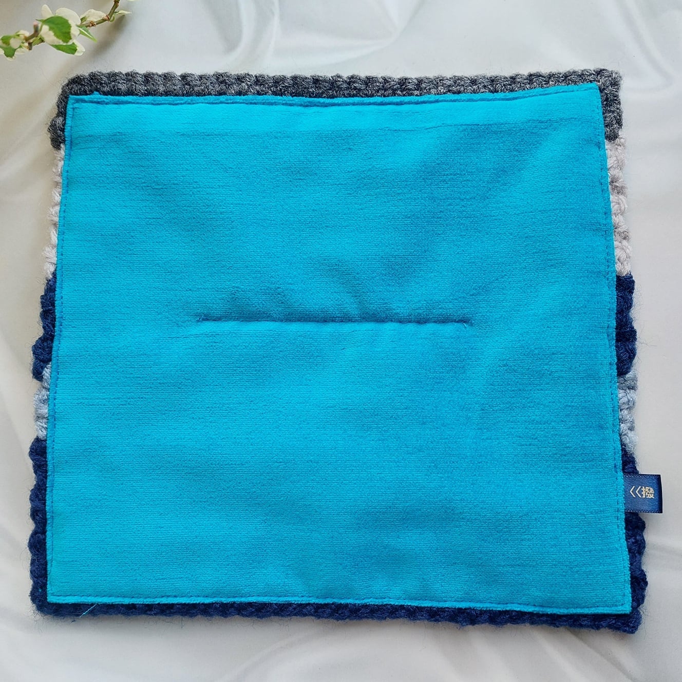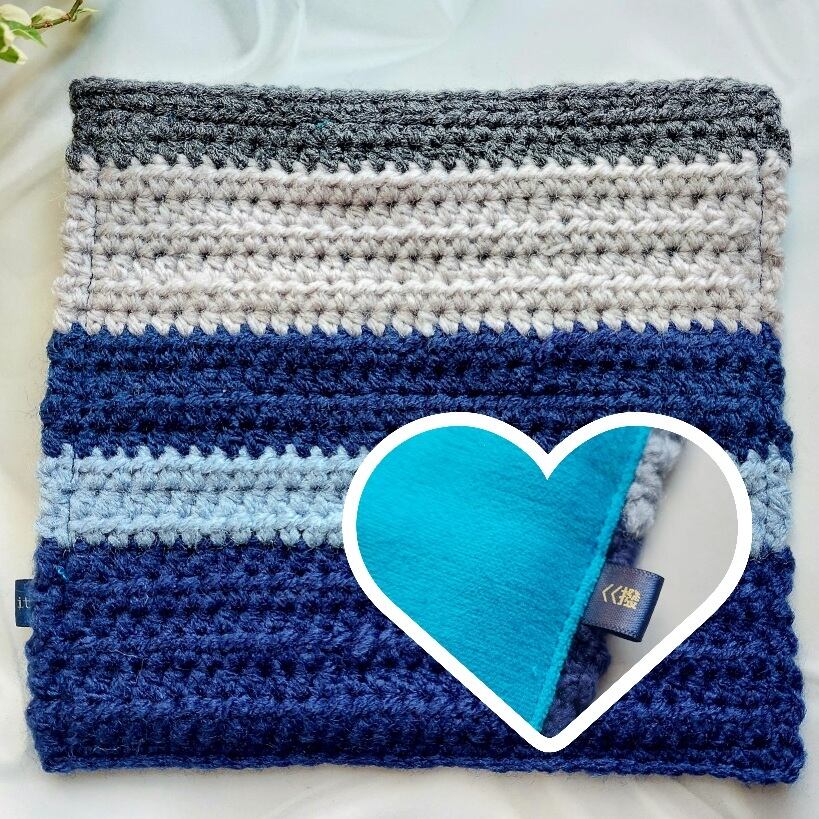 リニューアル☆三味線も撥もピカピカに!お手入れクロスⅢ(アクリル編地×艶ふきん)【紺グレー縞×マリンブルー】