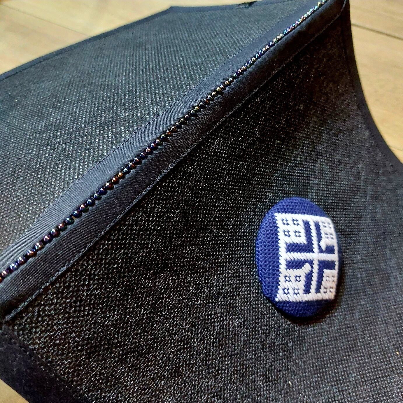 掛敷両用*三味線のための炭入り除湿シート*防カビ消臭効果も!ビーズとこぎん刺し飾りがオシャレな真っ黒なスグレモノ!