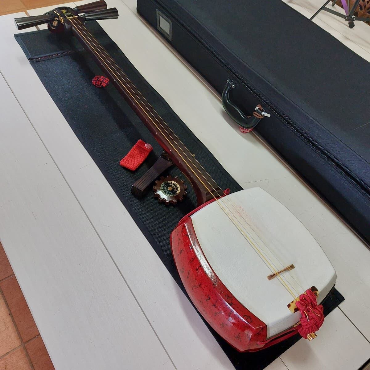 三味線ケースの一番上に掛ければ、ごちゃごちゃしがちなケース内の目隠しにもなってくれます♪お稽古時には畳や机に敷けば三味線置きマットとしてもお使い頂けます♪