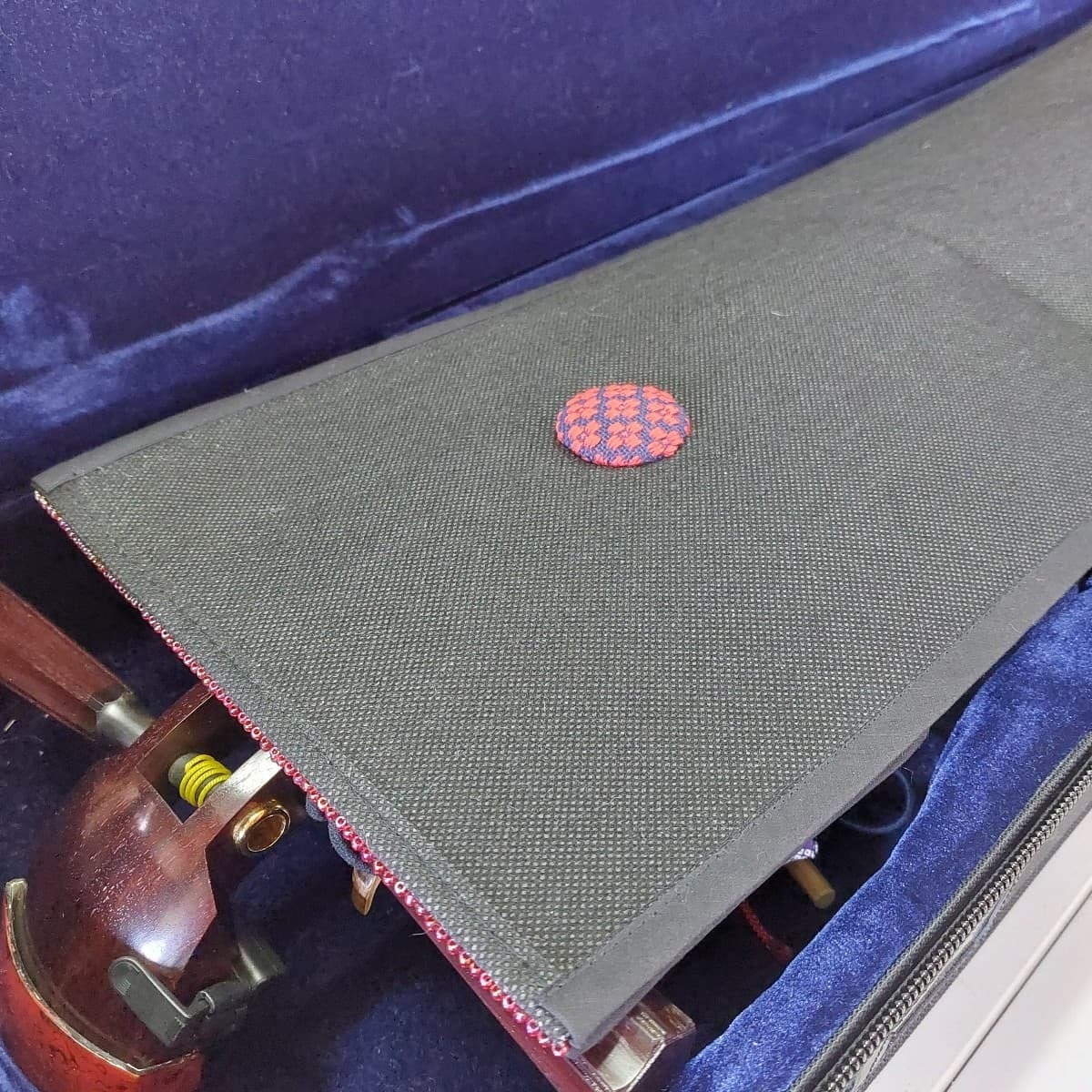 三味線ケースの一番上に掛ければ、ごちゃごちゃしがちなケース内の目隠しにもなってくれます♪お稽古時には畳や机に敷けば三味線置きマットとしてもお使い頂けます♪
