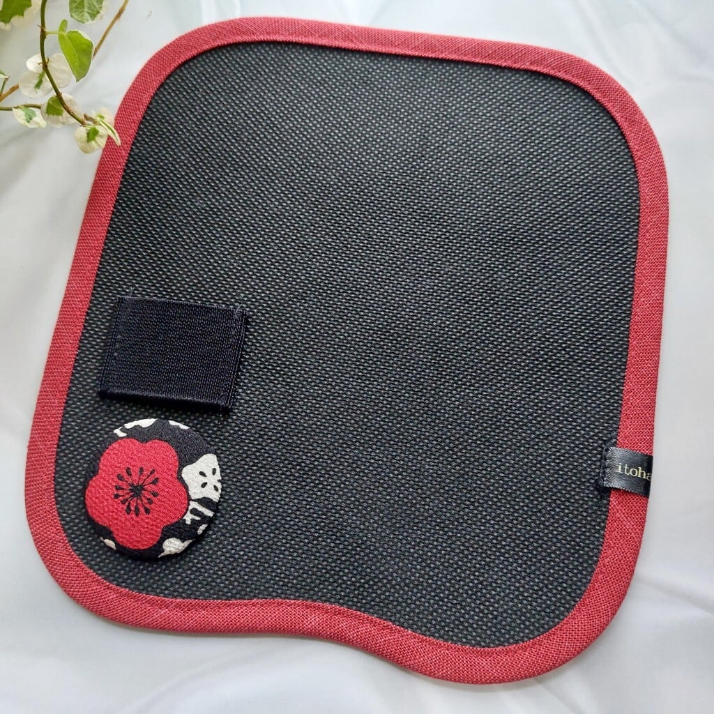 皮の除湿シート●お炭ちゃん●縁取り-赤/駒止め飾り-包みボタン