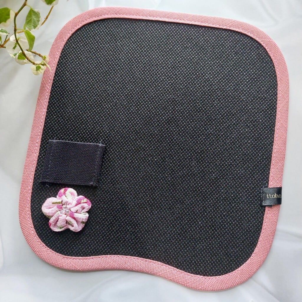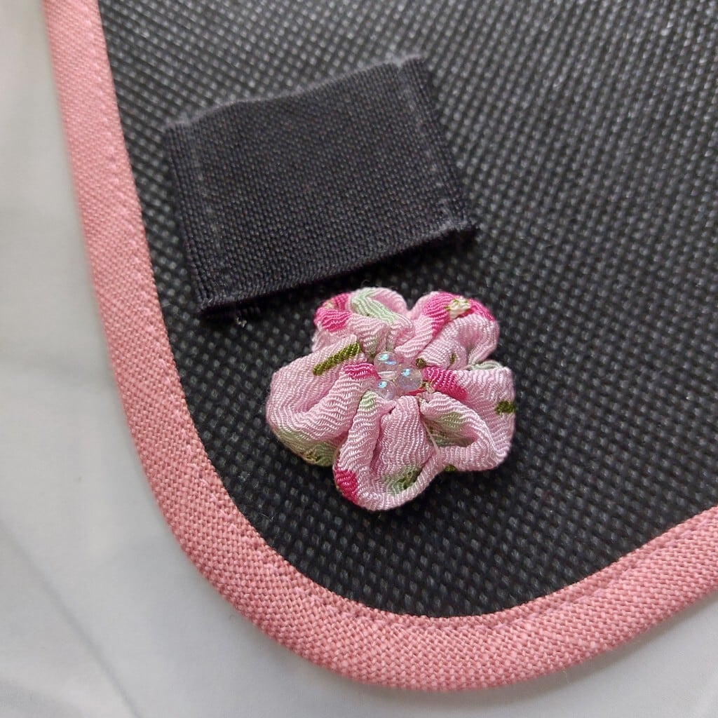 皮の除湿シート●お炭ちゃん●縁取り-ピンク/駒止め飾り-お守り花(五円玉入り)