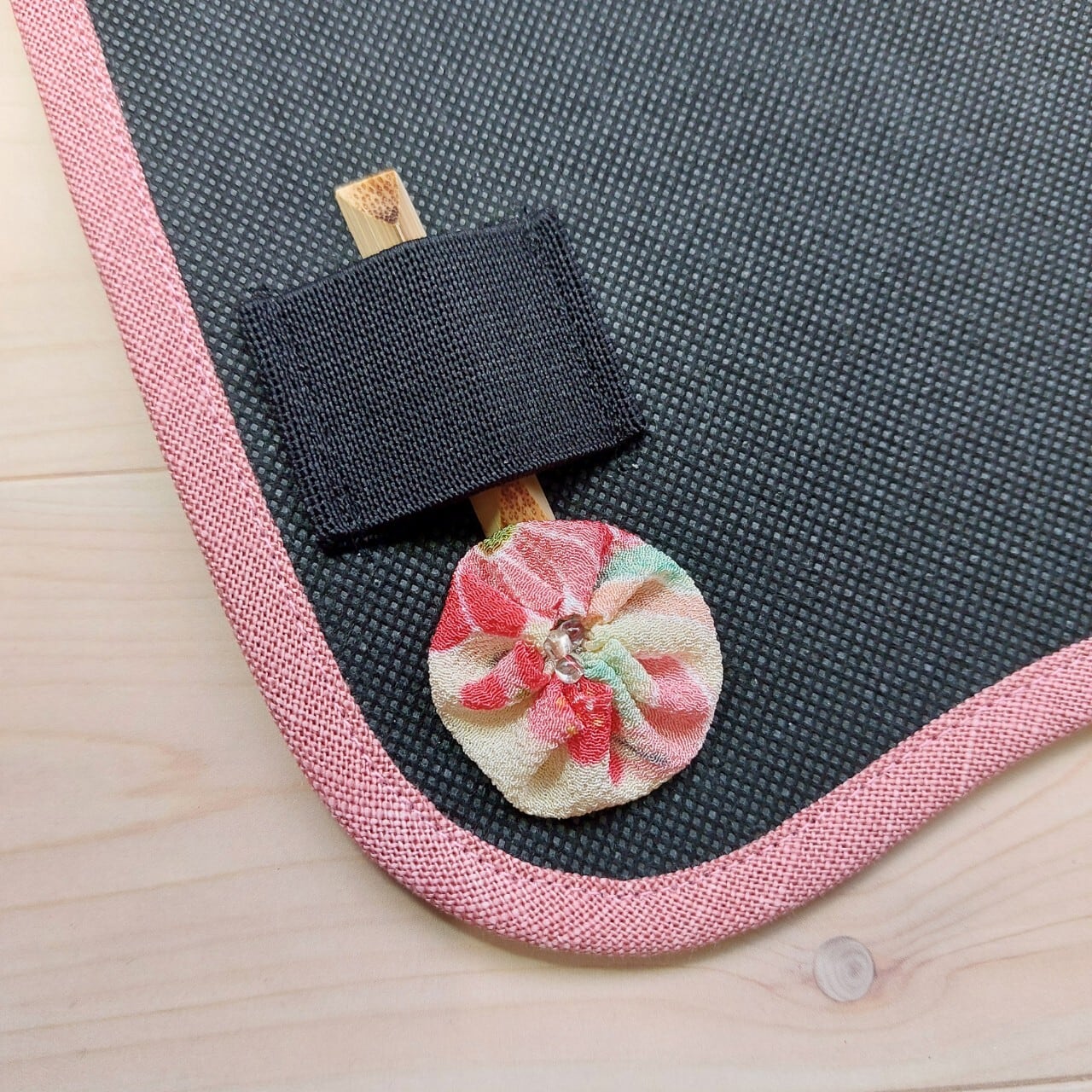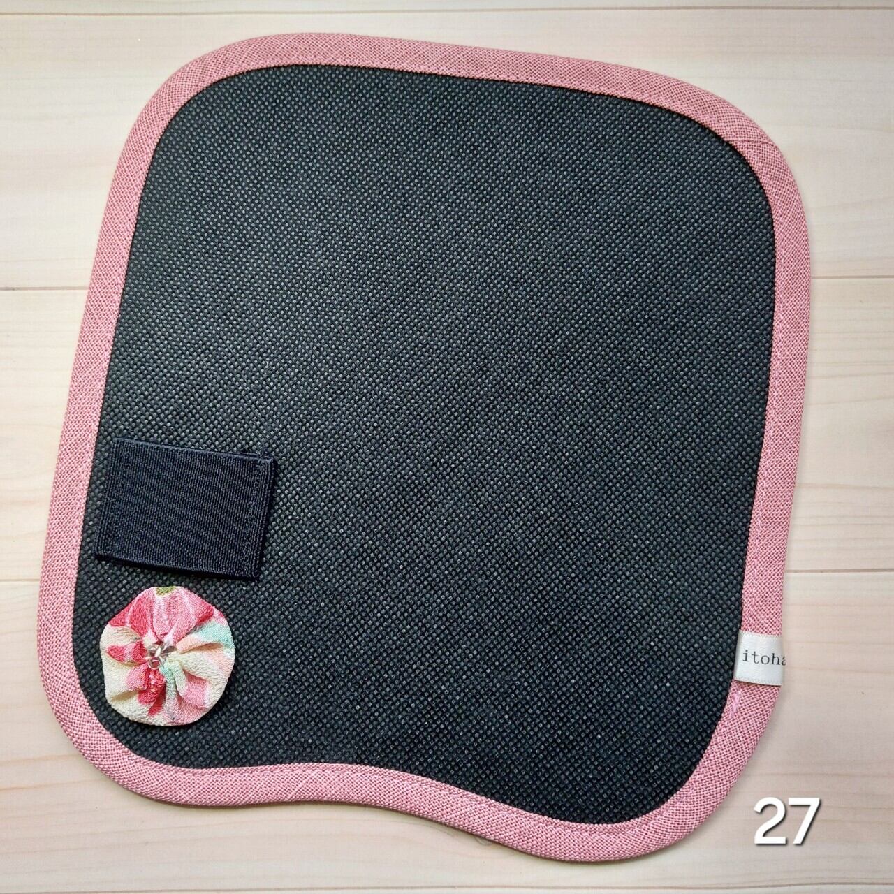 皮の除湿シート(27)●お炭ちゃん●縁取り-ピンク/駒止め飾り-丸花