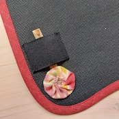 皮の除湿シート(29)●お炭ちゃん●縁取り-赤/駒止め飾り-丸花