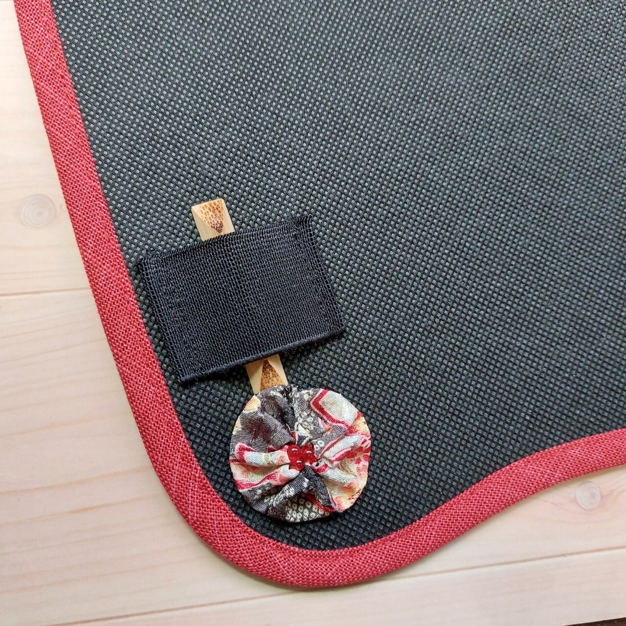 皮の除湿シート(30)●お炭ちゃん●縁取り-赤/駒止め飾り-丸花