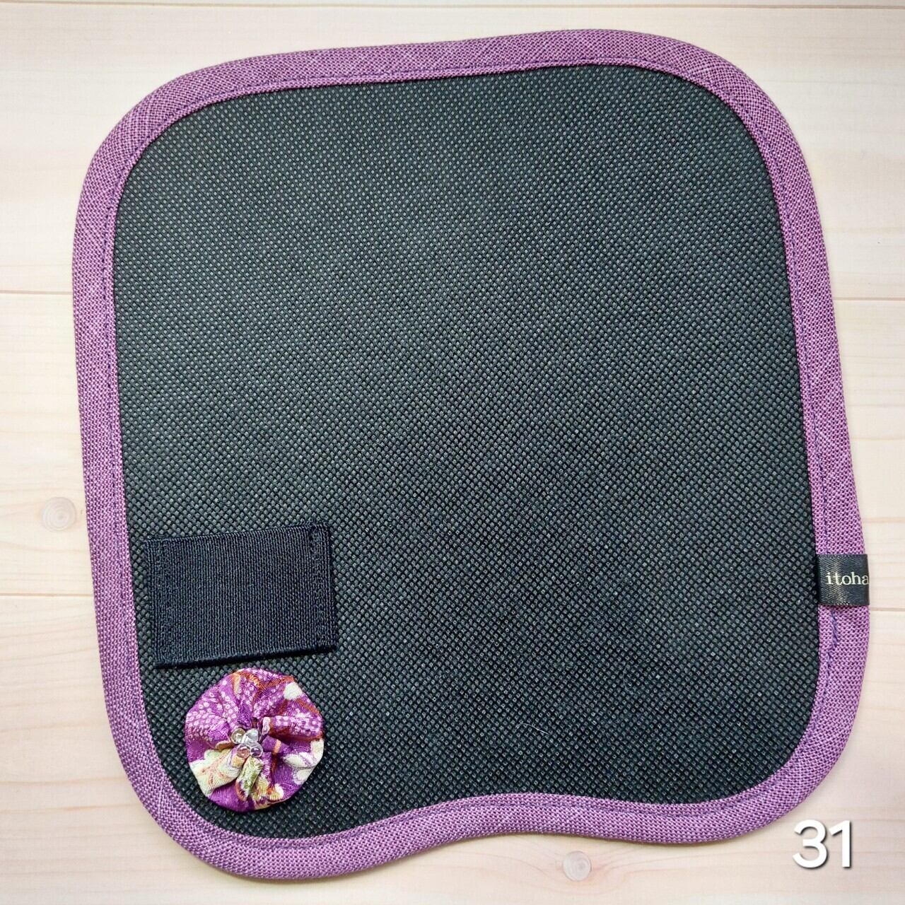皮の除湿シート(31)●お炭ちゃん●縁取り-紫/駒止め飾り-丸花