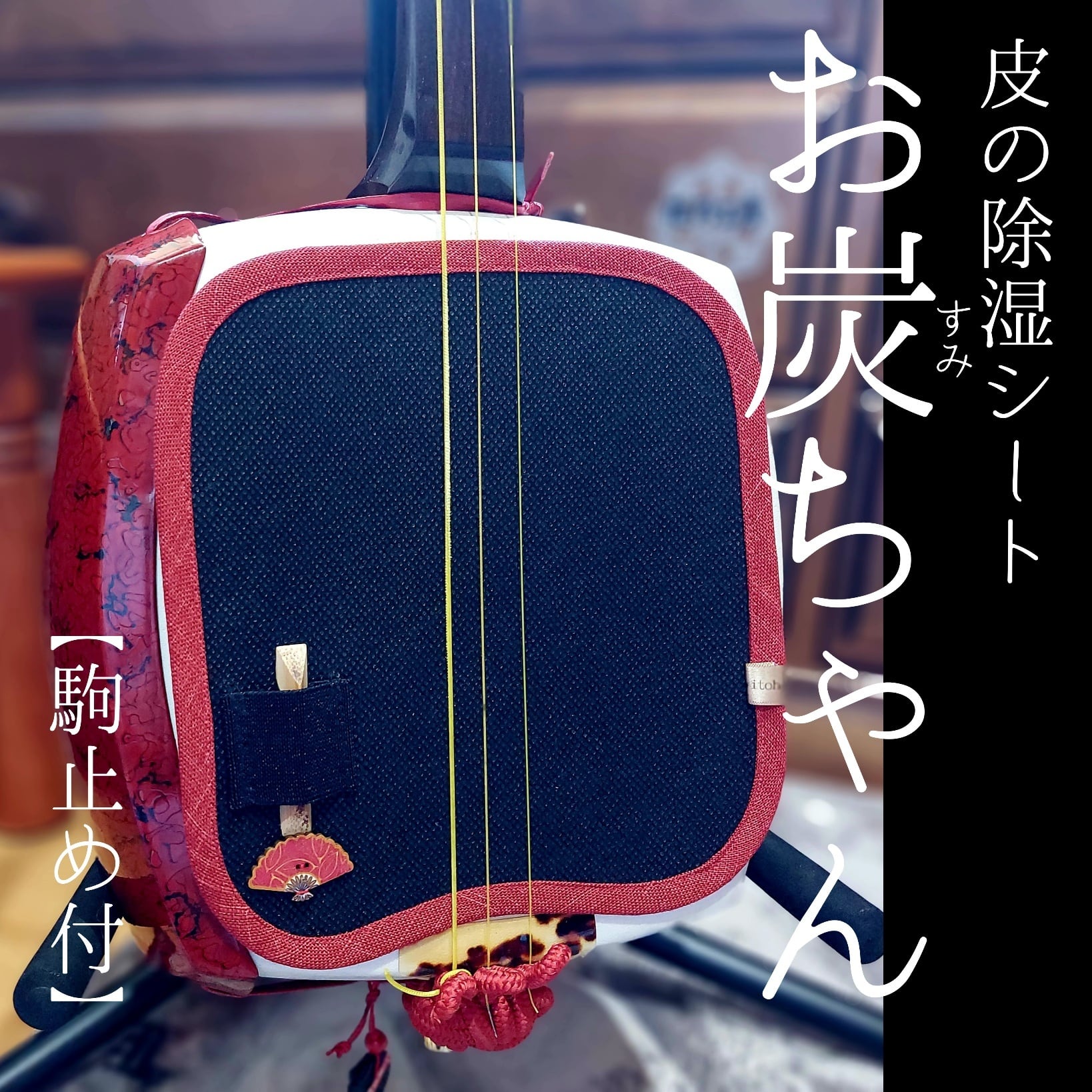 三味線の除湿グッズの新商品『お炭ちゃん』好評です♡ 古来からの桐板を湿気取りとしてご使用の方も多いと思いますが、目的としては同じアイテムになります。そこへ「駒」もスッと収納出来る設計を加え、万一の落下と紛失防止に飾りボタンを止めつけてお洒落もプラス。三味線を置いておく時も、本番前の楽屋でも、湿気対策と駒どこいった対策(笑)が一つに♪