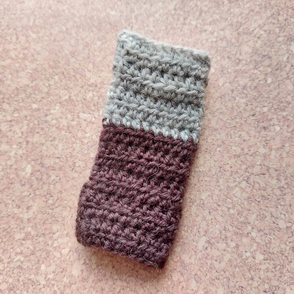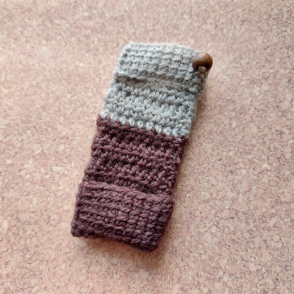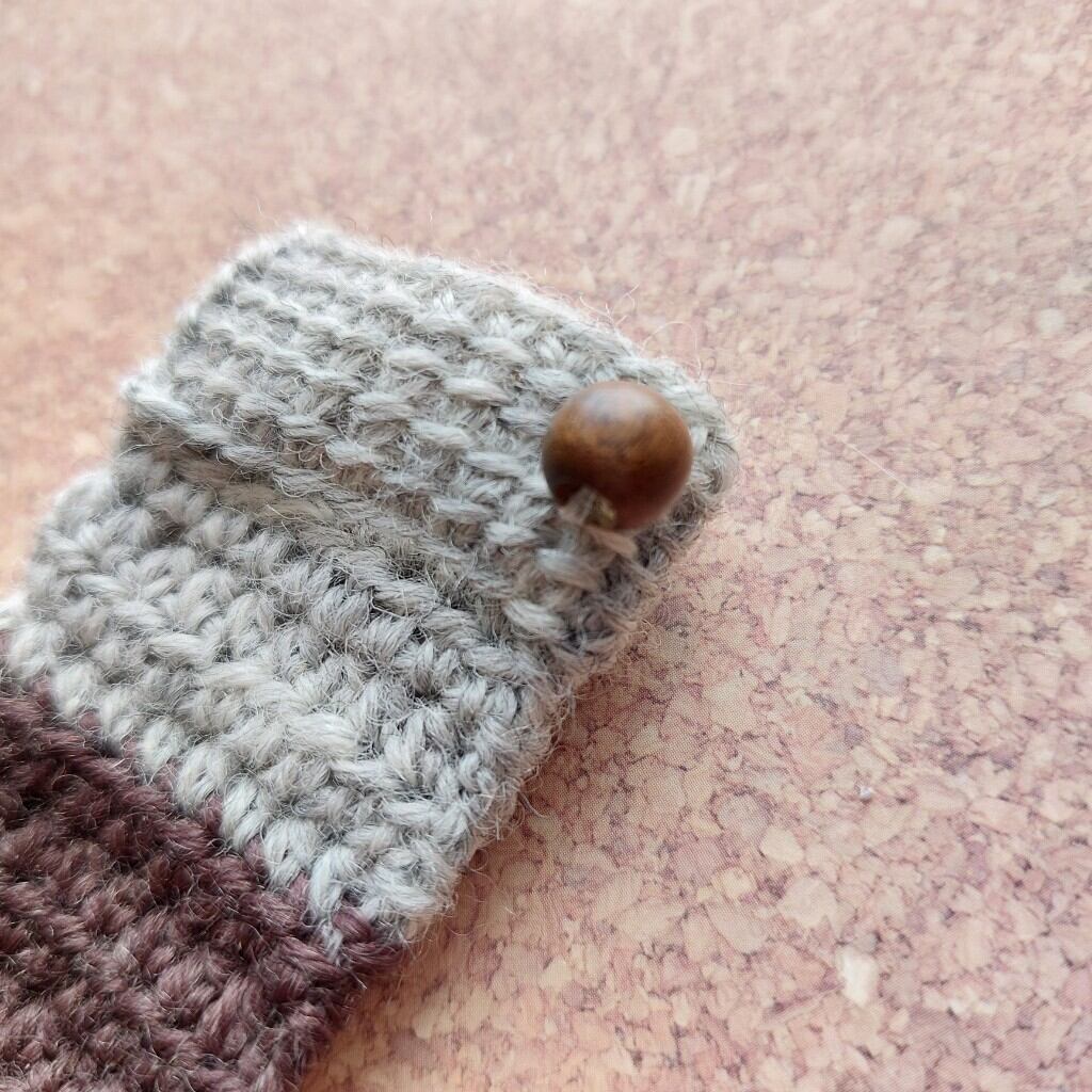 指すり/指かけ/二重編みタイプ/焦げ茶×グレー/Msize/飾り:ウッドビーズ/津軽三味線/itoha-yubisuri