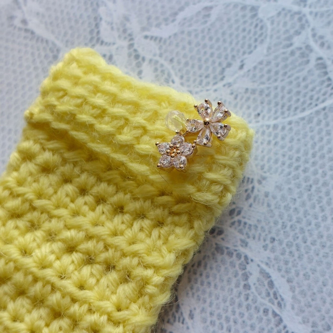 指すり/指かけ/二重編みタイプ/カナリヤ/Ssize/飾り:キラキラ小花チャーム/津軽三味線/itoha-yubisuri