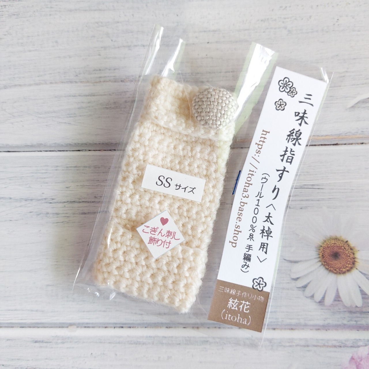 津軽三味線*指すり指かけ/二重編みタイプ/SSサイズ/オフホワイト/こぎん刺し飾り付き