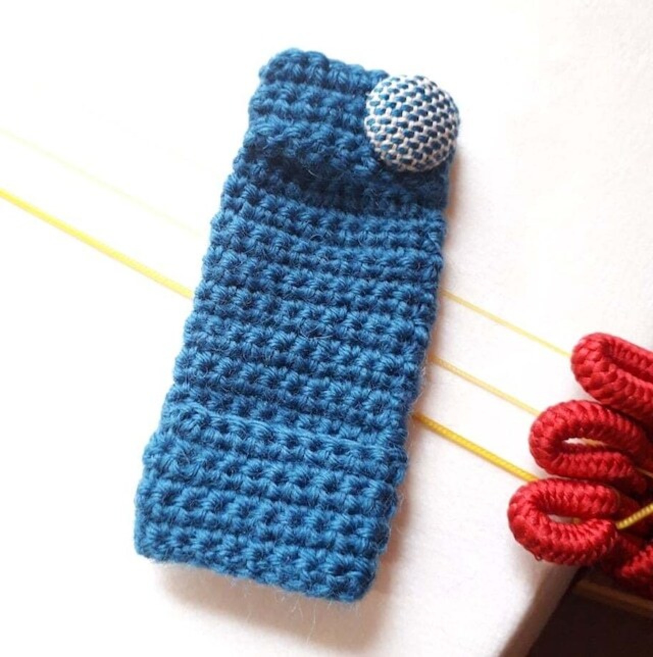 ウール100%の良質な毛糸でしっかり目の細編み手編みで仕上げています。棹を滑る本体は二重に仕上げているので程良い厚みもあり、従来品で演奏中のヨレが気になる方には是非お試し頂きたいこだわりのオリジナルの作りです。