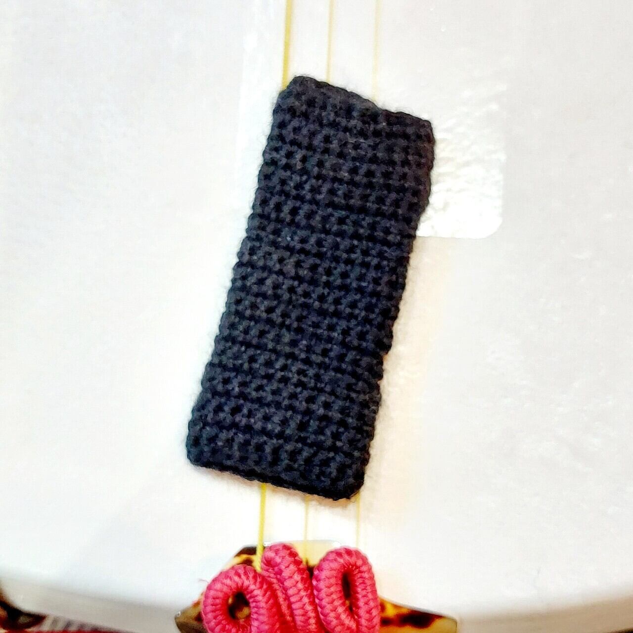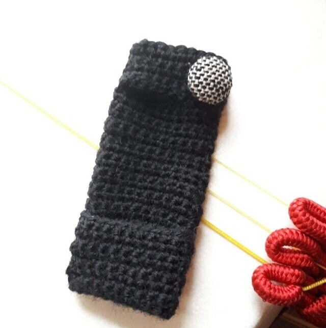ウール100%の良質な毛糸でしっかり目の細編み手編みで仕上げています。棹を滑る本体は二重に仕上げているので程良い厚みもあり、従来品で演奏中のヨレが気になる方には是非お試し頂きたいこだわりのオリジナルの作りです。