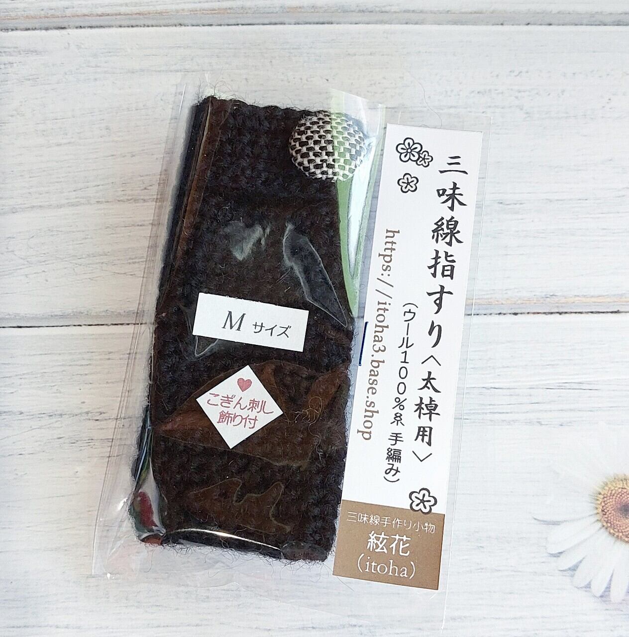 津軽三味線*指すり指かけ/二重編みタイプ/Mサイズ/黒/こぎん刺し飾り付き