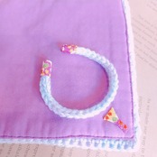 三味線も撥もピカピカに!お手入れクロス(リバーシブル:アクリル編地×ツヤ布巾)糸倉みがき紐付き【⑬薄紫mix×パープル】
