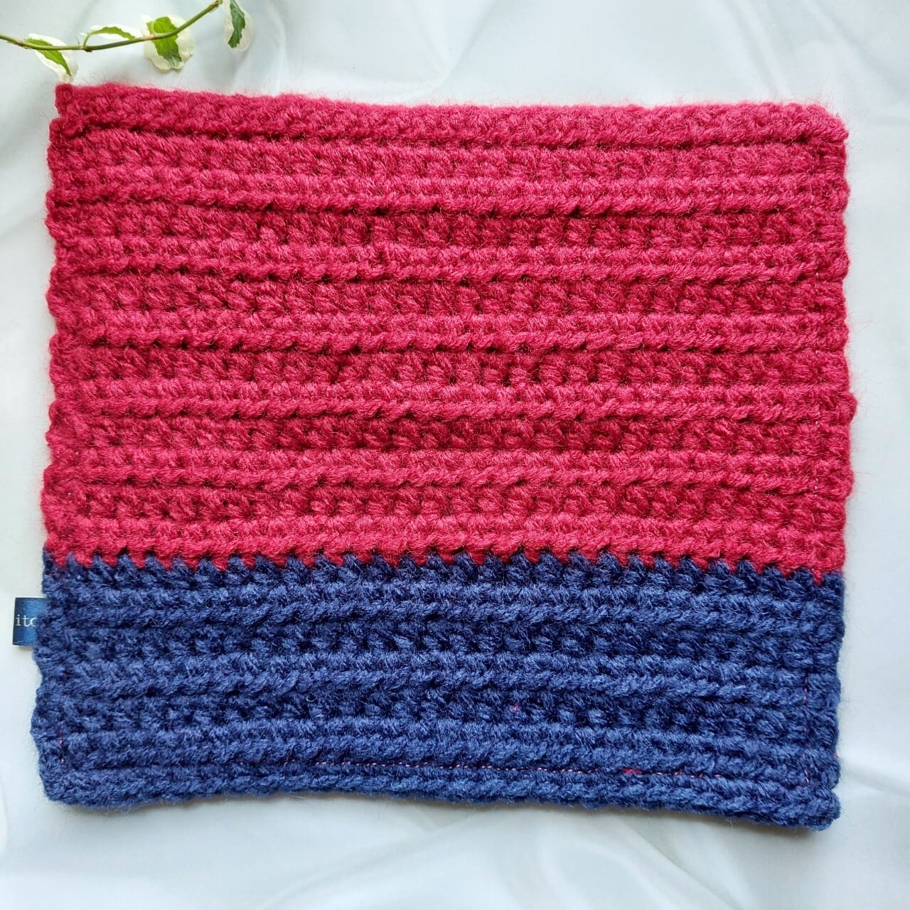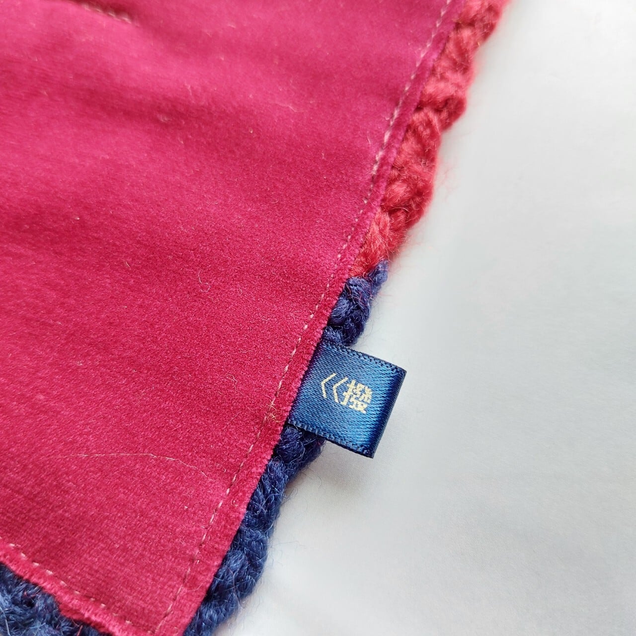 リニューアル☆三味線も撥もピカピカに!お手入れクロスⅢ(アクリル編地×艶ふきん)【ツートン:赤&紺×マゼンタ】